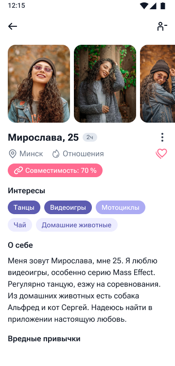 Приложение подберет вам идеальную пару или собеседника в зависимости от ваших увлечений и цели знакомства